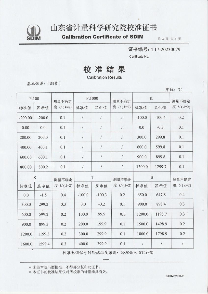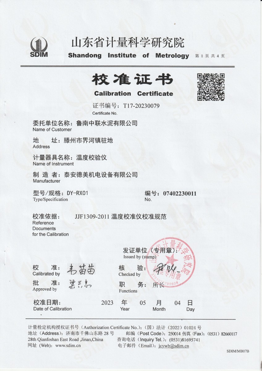 魯南中聯(lián)水泥有限公司 溫度校驗儀 校準證書 2023-5-26 本文被閱讀 13499 次