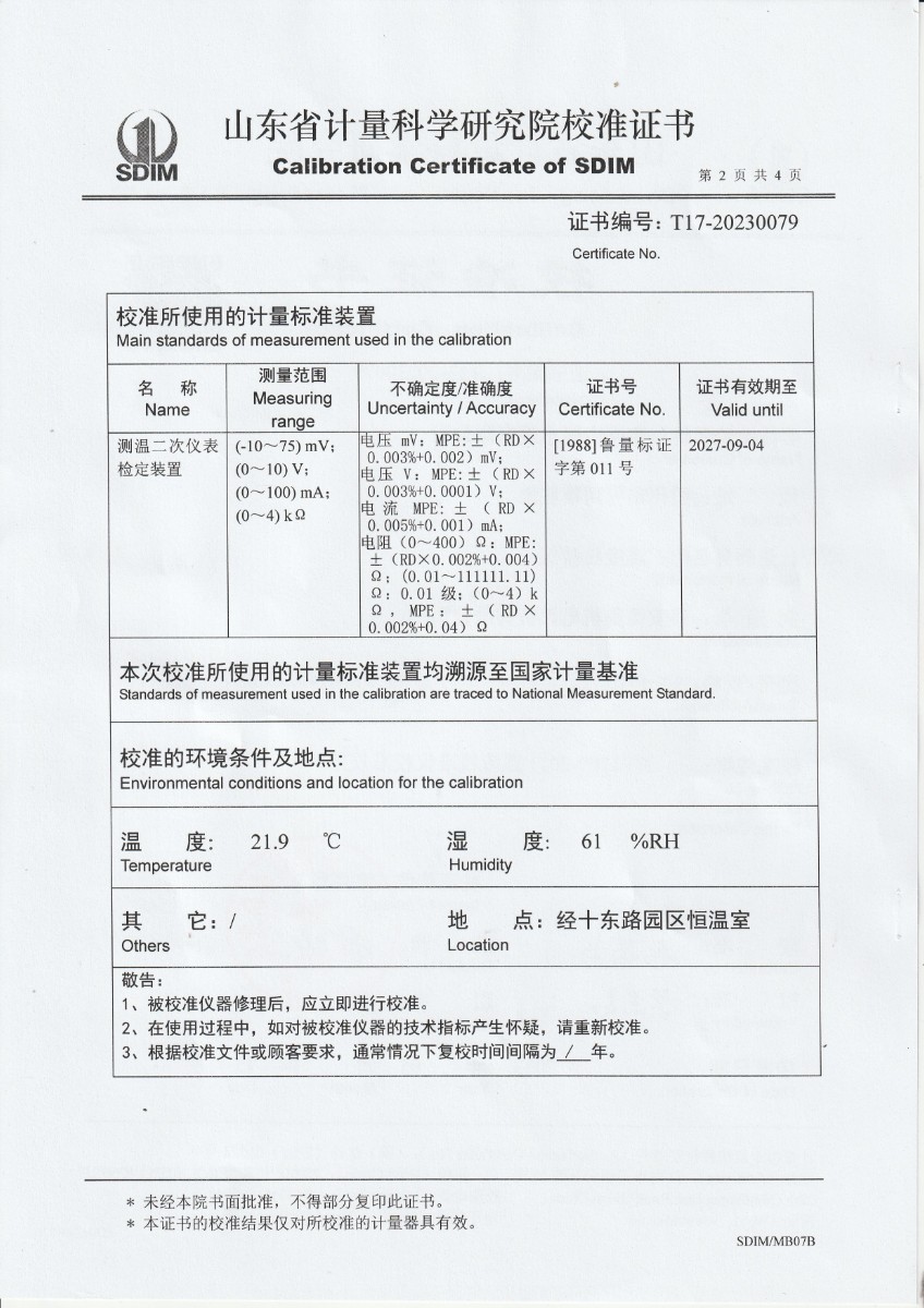上一條:魯南中聯(lián)水泥有限公司 高精度數(shù)字溫度計 校準證書下一條:便攜式干體爐(-30-150℃)校準證書
