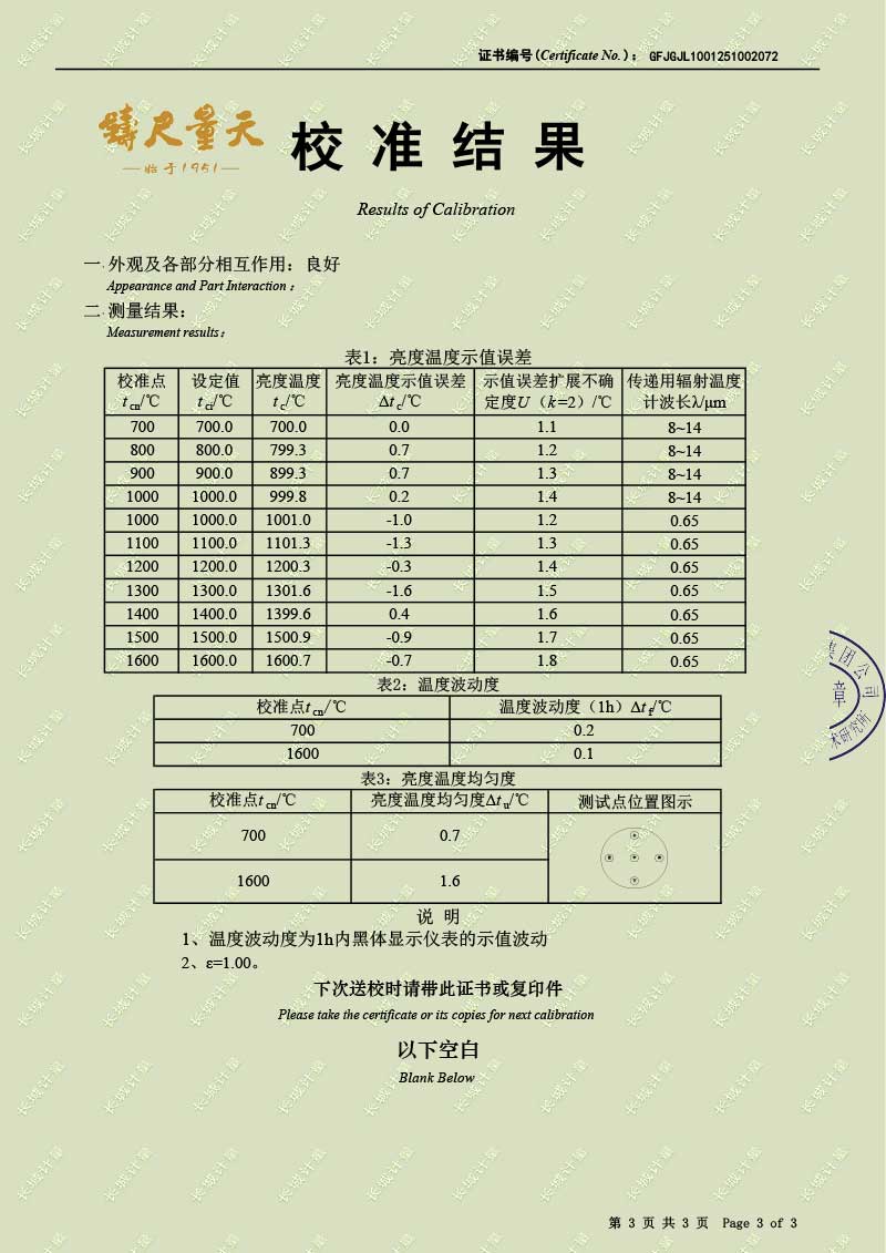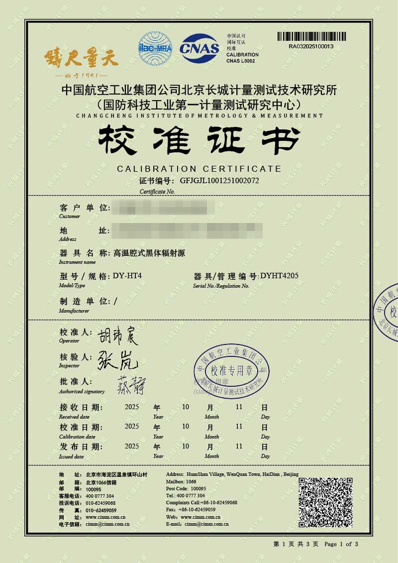 高溫腔式黑體輻射源(700-1600℃)校準(zhǔn)證書 2025-10-30 本文被閱讀 32 次