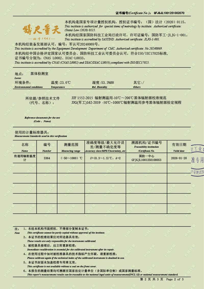 中溫腔式黑體輻射源(50-700℃)校準(zhǔn)證書 2025-10-30 本文被閱讀 23 次