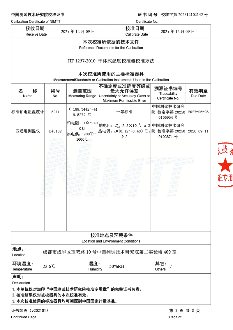 低溫干體爐校準(zhǔn)證書(shū) 2025-12-11 本文被閱讀 85 次