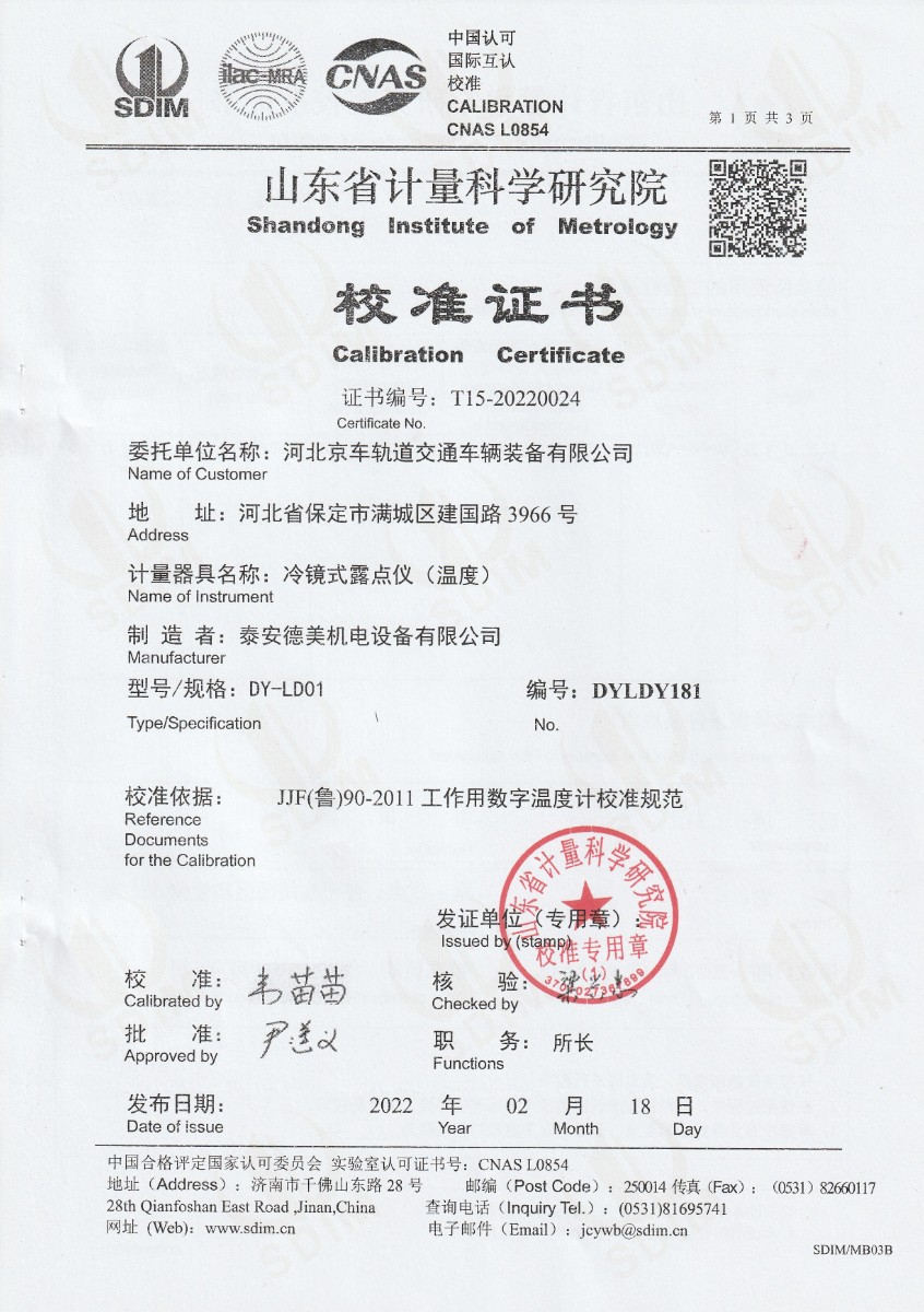 | 上一條:鄭州賽奧電子股份有限公司-干體爐DYGT150246 | 下一條:便攜式溫濕度檢定箱(-10-60℃)校準(zhǔn)證書 |