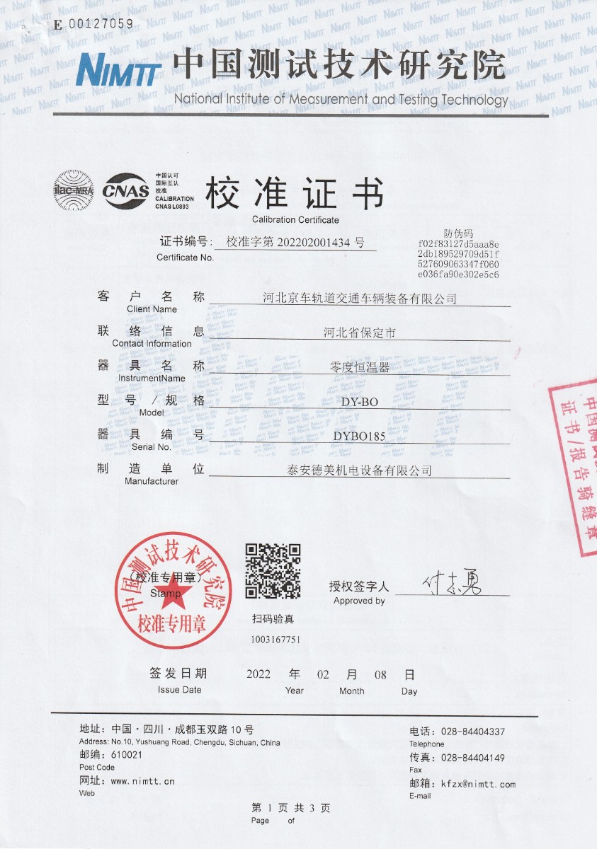 | 上一條:河北京車軌道交通車輛裝備有限公司S分度補(bǔ)償導(dǎo)線 | 下一條:便攜式溫濕度檢定箱(-10-60℃)校準(zhǔn)證書 |