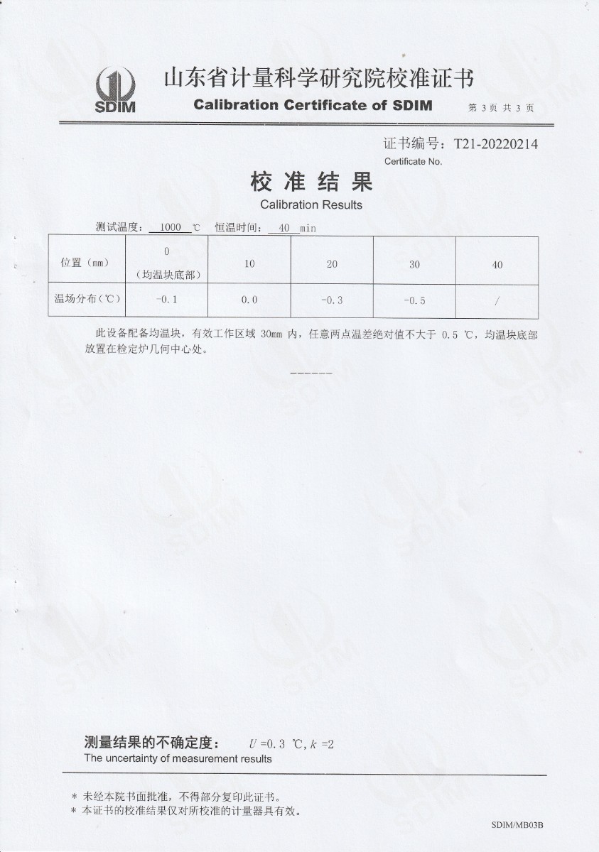 | 上一條:泰源檢測認(rèn)證集團(tuán)有限公司-黑體輻射源 | 下一條:便攜式干體爐(-30-150℃)校準(zhǔn)證書 |
