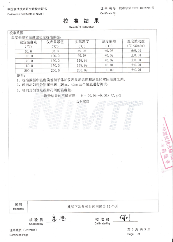 | 上一條:長沙百川超硬材料工具有限公司-熱電偶檢定爐 | 下一條:便攜式干體爐(-30-150℃)校準(zhǔn)證書 |