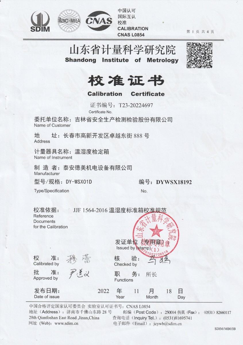 吉林省安全生產(chǎn)檢測檢驗股份有限公司 溫濕度檢定箱 2022-11-23 本文被閱讀 11759 次
