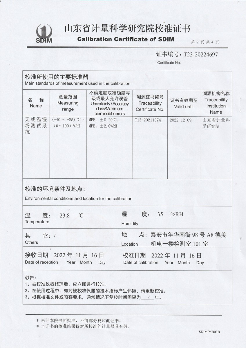 上一條:海安橡膠集團股份有限公司 干體爐 校準證書下一條:便攜式干體爐(-30-150℃)校準證書