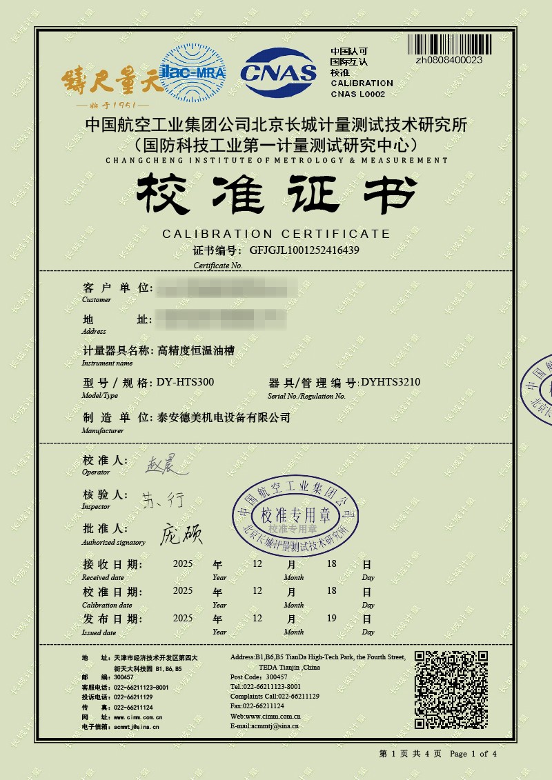 高精度恒溫油槽-校準證書 2025-12-19 本文被閱讀 22 次