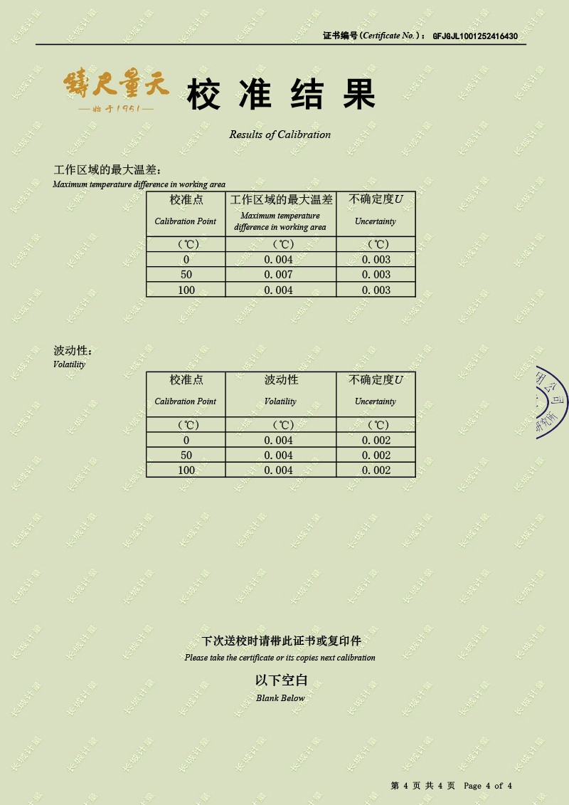 | 上一條:高精度恒溫油槽-校準(zhǔn)證書 | 下一條:高精度制冷恒溫槽(-80~100℃)校準(zhǔn)證書 |