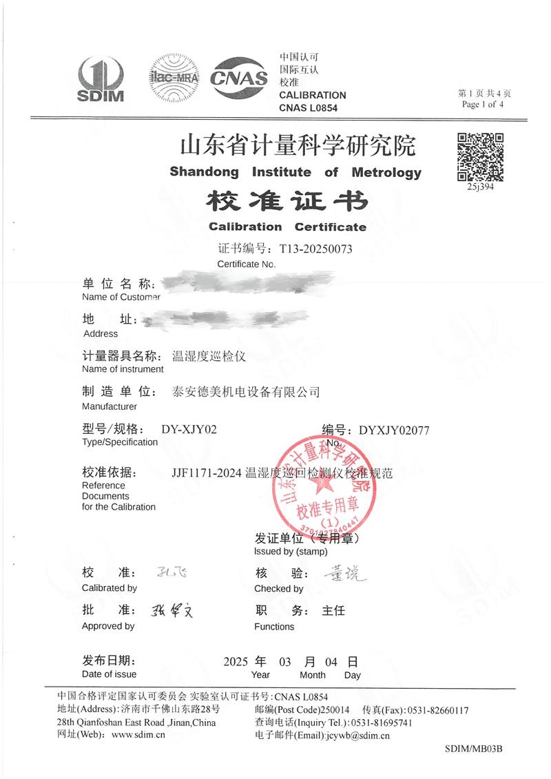 溫濕度巡檢儀校準(zhǔn)證書 2025-3-8 本文被閱讀 3097 次