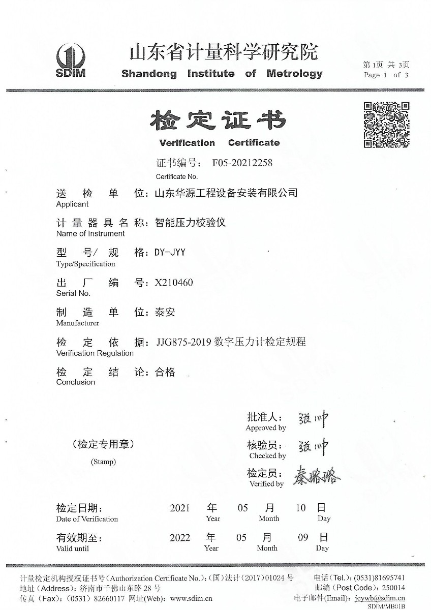 | 上一條:山東華源工程設(shè)備安裝有限公司-智能壓力校驗(yàn)儀X210459 | 下一條:零點(diǎn)恒溫器校準(zhǔn)證書 |