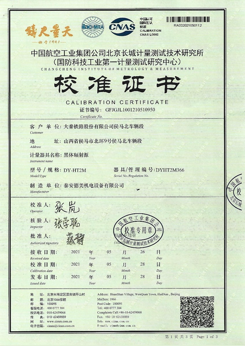 大秦鐵路股份有限公司侯馬北車輛段-黑體輻射源 2021-6-5 本文被閱讀 14061 次