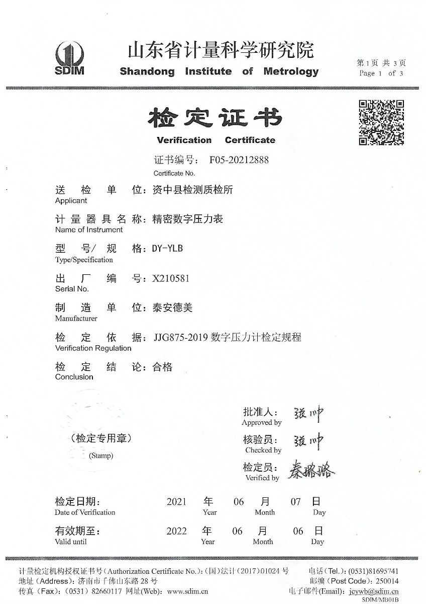 資中縣檢測質(zhì)檢所-精密數(shù)字壓力表 2021-6-10 本文被閱讀 15888 次