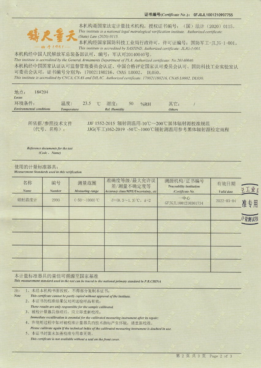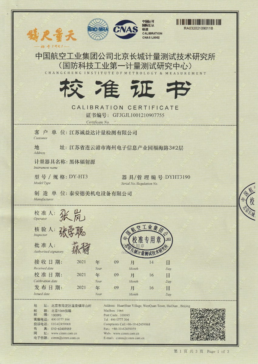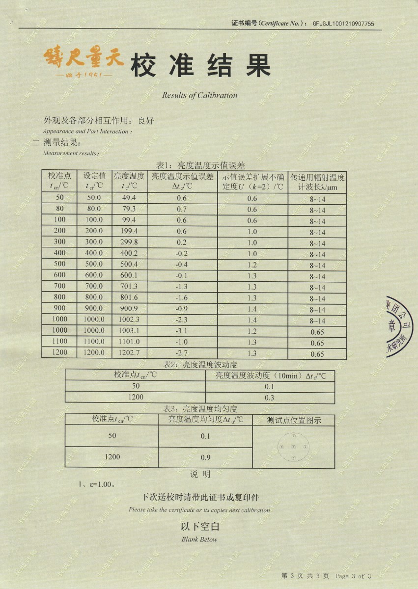| 上一條:中國科學(xué)院微電子研究所-面源黑體輻射源 | 下一條:溫濕度檢定箱(-5~65℃)校準(zhǔn)證書 |