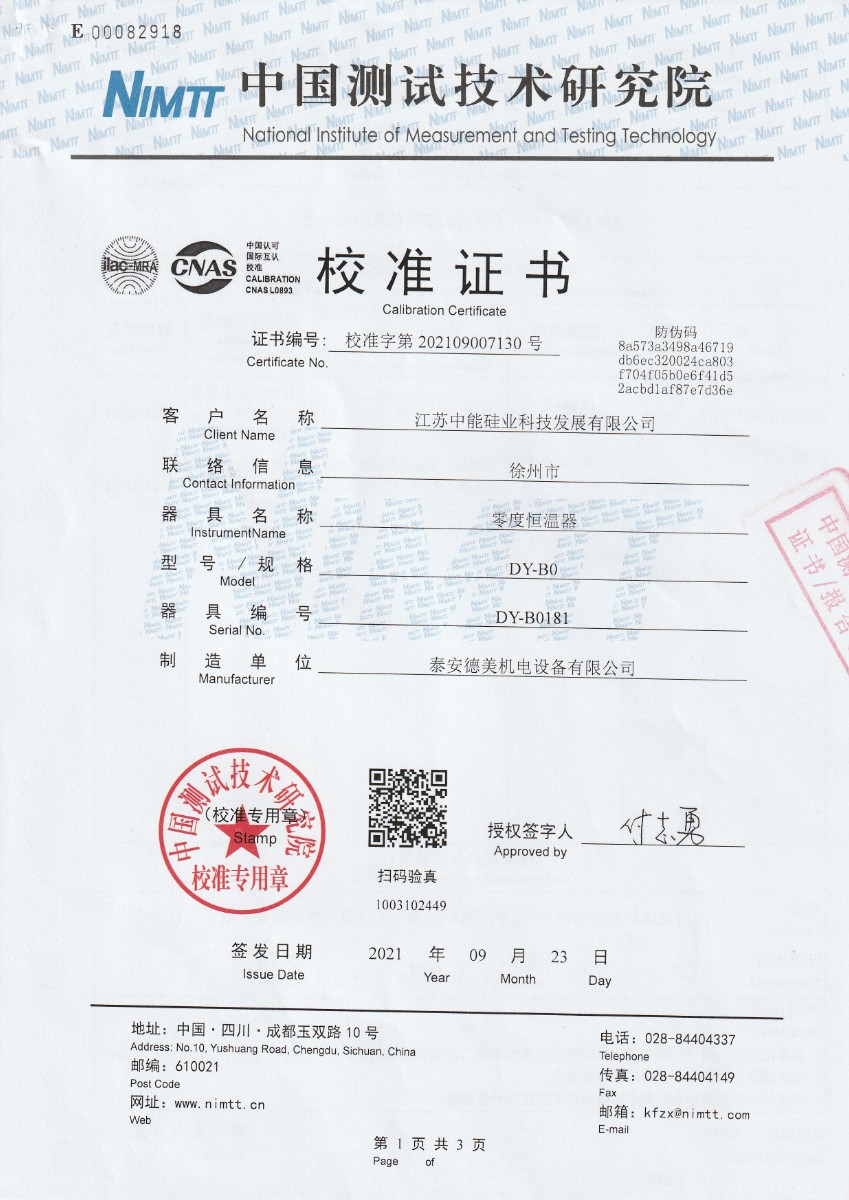 | 上一條:江蘇中能硅業(yè)科技發(fā)展有限公司-S分度補(bǔ)償導(dǎo)線 | 下一條:溫濕度檢定箱(-5~65℃)校準(zhǔn)證書 |