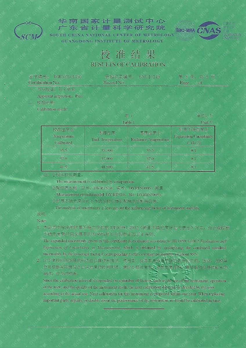 | 上一條:上海紅力檢測(cè)技術(shù)有限公司-額溫計(jì)黑體空腔 | 下一條:冷鏡式露點(diǎn)儀校準(zhǔn)證書(shū) |