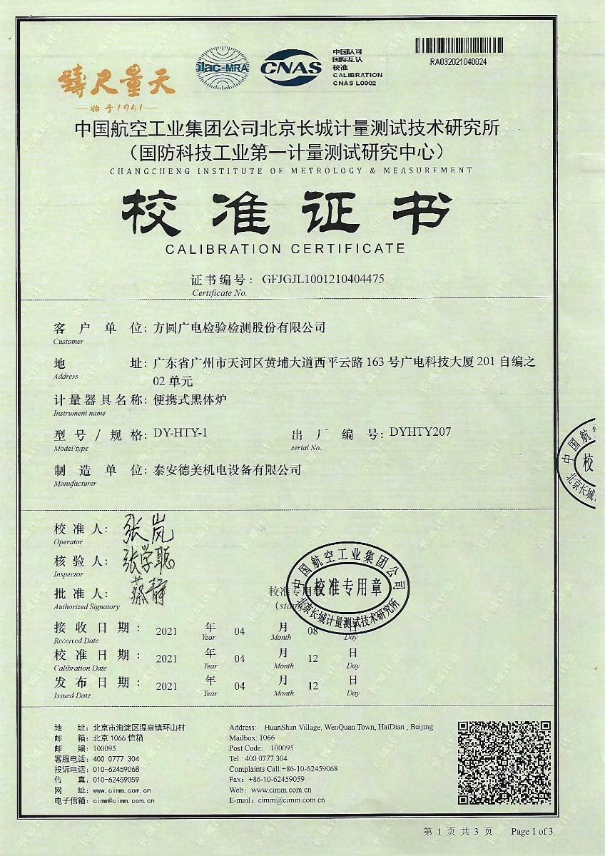 | 上一條:上海紅力檢測(cè)技術(shù)有限公司-耳溫計(jì)黑體空腔 | 下一條:冷鏡式露點(diǎn)儀校準(zhǔn)證書(shū) |